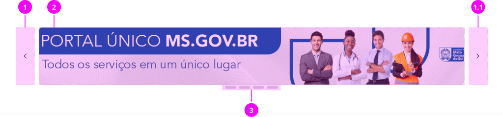 O Carrossel é um componente de exibição sequencial de conteúdos em destaque, permitindo alternância entre múltiplos itens dentro do mesmo espaço horizontal.