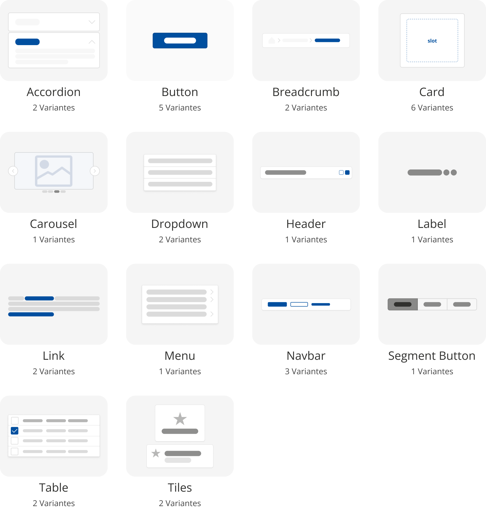 Nossa biblioteca de componentes base conta atualmente com 41 componentes projetados em Design.