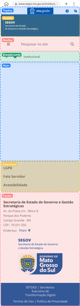 Essa é uma visão geral de como foi construída a estrutura de conteúdos das páginas. Mais do que um conjunto de elementos visuais, ela funciona como um guia de navegação padronizado, garantindo consistência entre os sites das secretarias, facilitando a encontrabilidade das informações e oferecendo ao usuário uma experiência clara, organizada e intuitiva.