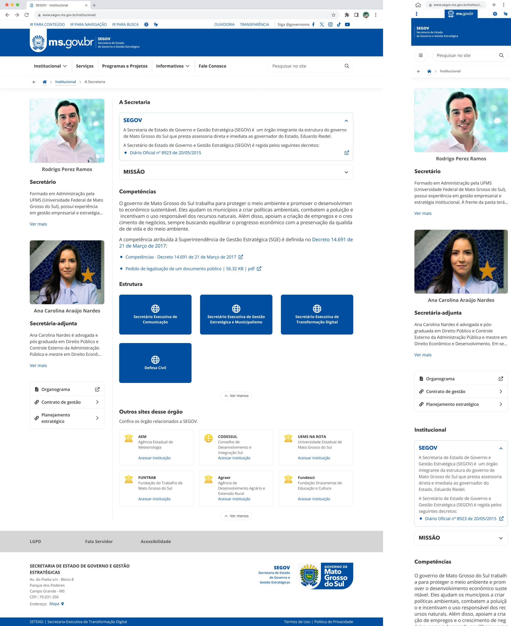 • Secretários e Secretarias Adjuntas: Apresentação dos responsáveis pela Secretaria e seus auxiliares, com informações sobre suas funções.